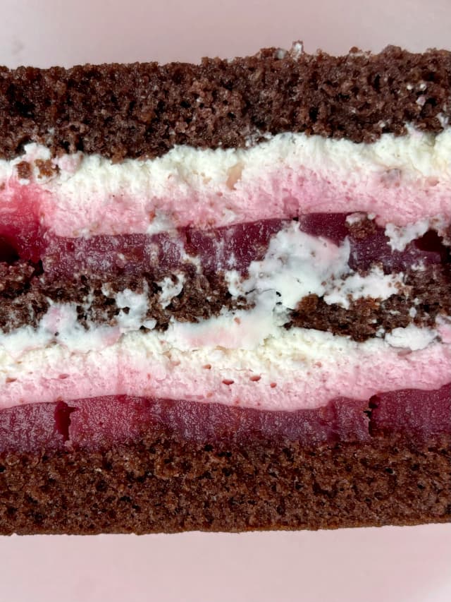 Čokoládový piškot, višňové compoté, krém se základem z mascarpone