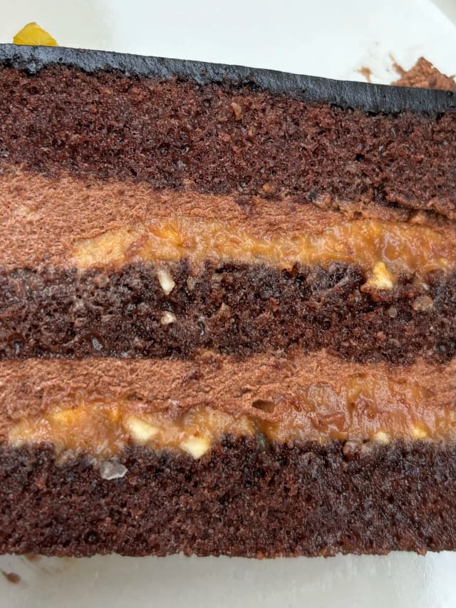 Čokolády piškot, slaný karamel s arašídy, čokoládový mousse