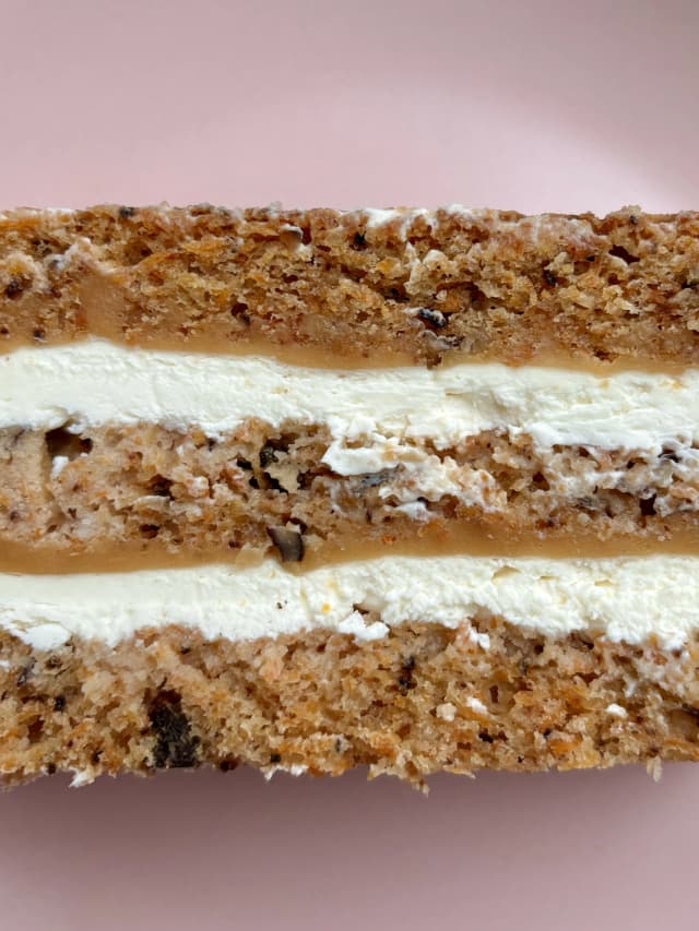 Mrkvový piškot, vlašský ořech, tvarohový krém